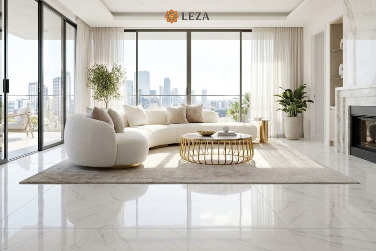 Hiệu ứng thị giác: Khi lát sàn hoặc ốp tường bằng màu trắng vân đá, ranh giới giữa các bức tường dường như bị xóa nhòa, khiến không gian trông rộng hơn gấp đôi so với thực tế.