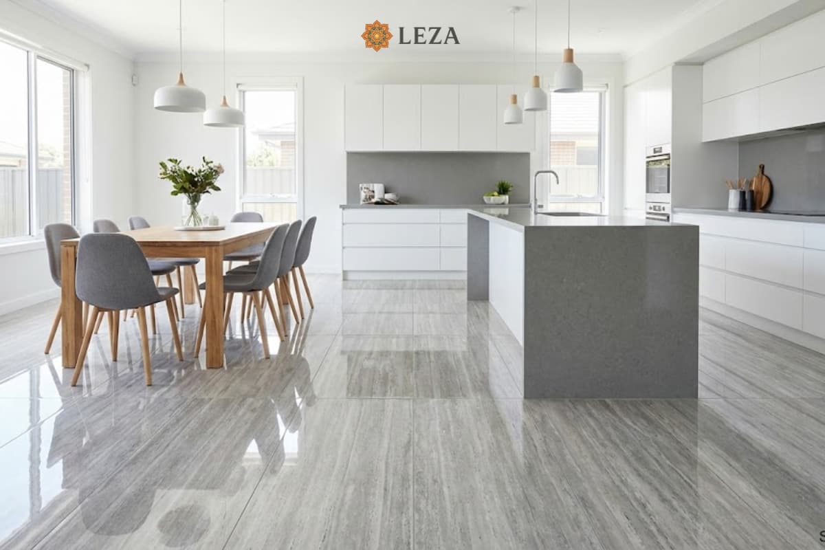 Sáng bừng sức sống: Màu xám bạc kết hợp với bề mặt Men Bóng (Polished) giúp sàn nhà bắt sáng tuyệt vời. Không gian không chỉ sang trọng mà còn luôn tươi mới, tràn đầy năng lượng tích cực.