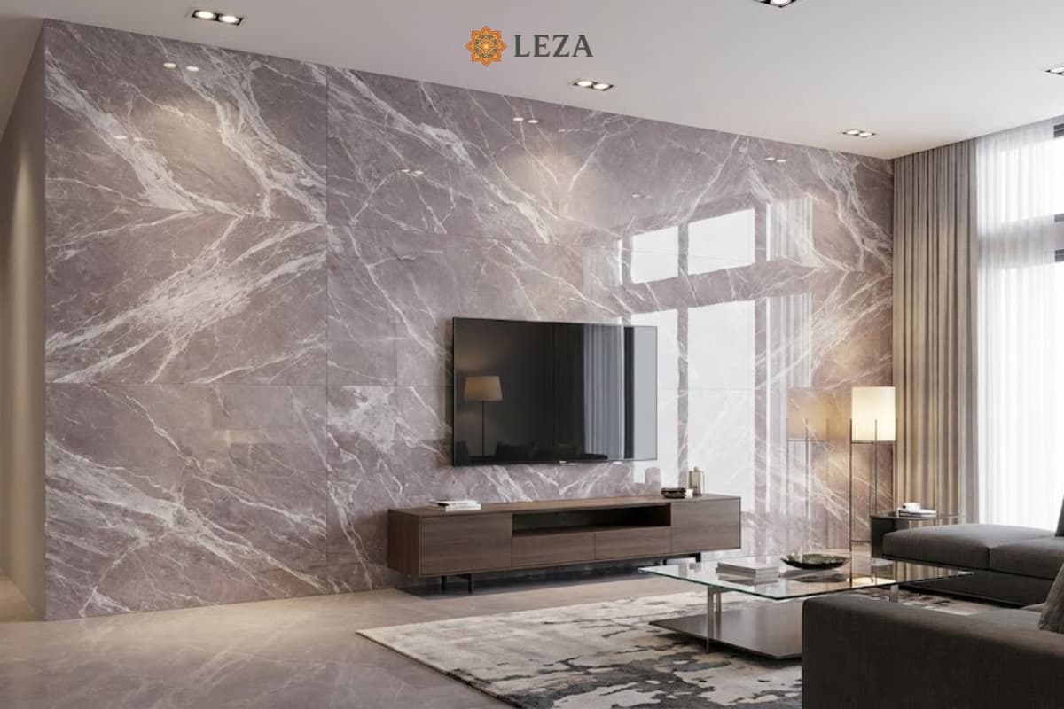 Đây là ứng dụng “đỉnh” nhất của SH86025B. Thay vì dùng tranh đá, hãy dùng những tấm gạch khổ lớn này để ốp vách. Vân đá Breccia sẽ tạo nên một bức tranh thiên nhiên trừu tượng đầy ấn tượng sau màn hình Tivi.