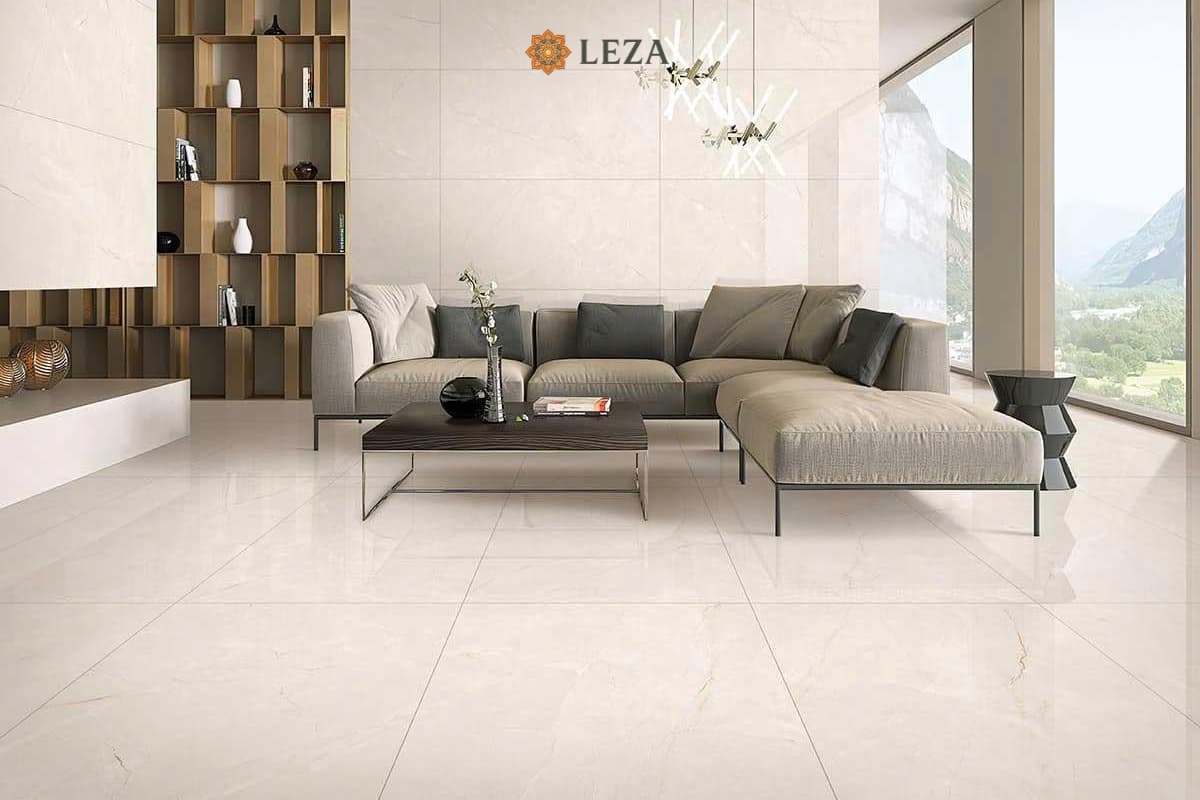 Dễ phối nội thất: Đây là gam màu nền nã, dễ dàng kết hợp với mọi phong cách nội thất. Từ sofa màu xám hiện đại, bàn gỗ cổ điển cho đến các chi tiết trang trí mạ vàng (Gold) đều trở nên nổi bật trên nền gạch này.