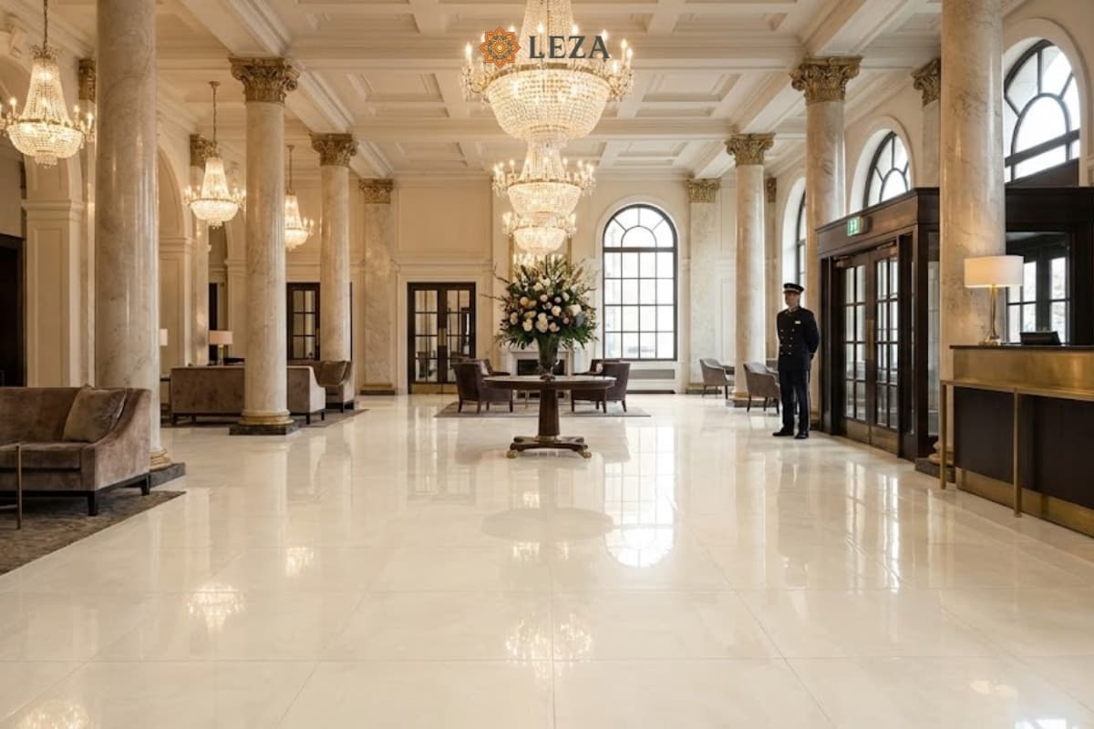 Màu trắng ngà sạch sẽ và bề mặt bóng giúp các khu vực sảnh chờ, hành lang trở nên chuyên nghiệp, thoáng đãng và chào đón hơn.