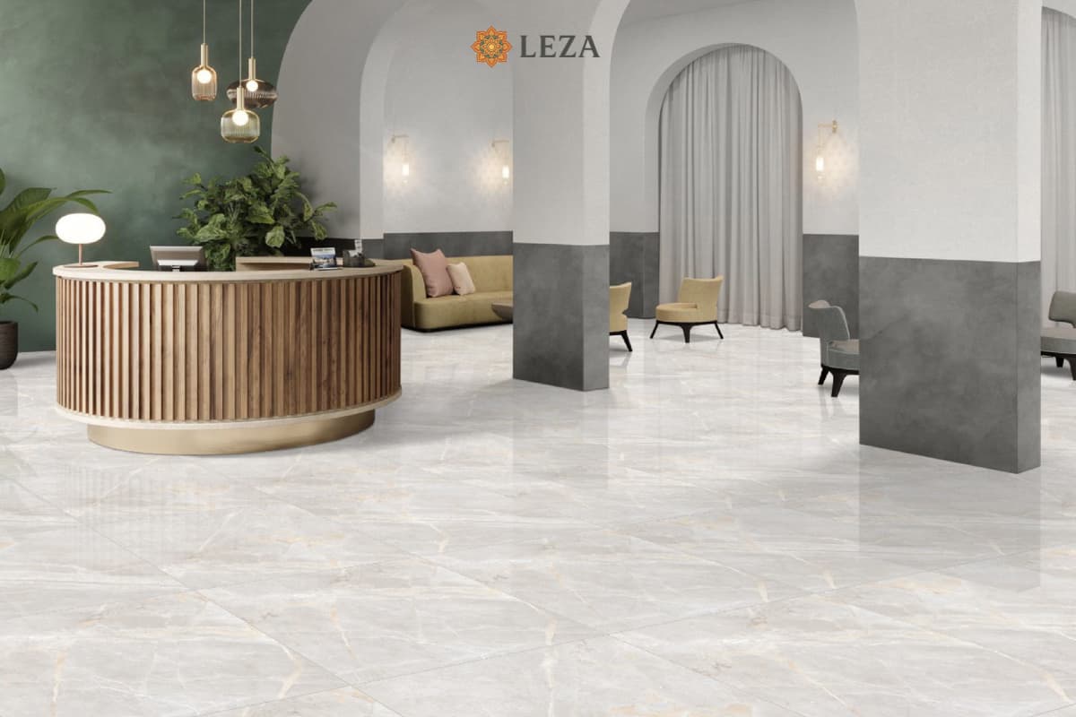 Sản phẩm sở hữu tông nền Xám Khói Sáng (Light Grey) thanh lịch, không quá lạnh lẽo nhờ những đường vân đá màu Vàng Kem (Soft Gold/Beige) chạy len lỏi trên bề mặt. Sự hòa quyện này tạo nên một tổng thể vừa sang trọng, vừa ấm cúng, biến sàn nhà thành điểm nhấn tinh tế cho mọi công trình.