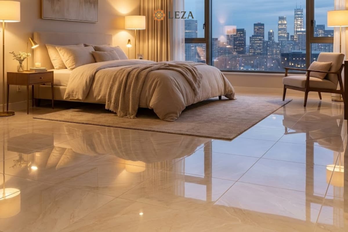 Hiệu ứng gương: Độ bóng cao giúp sàn nhà phản chiếu ánh sáng tự nhiên và đèn điện, khiến không gian trông rộng rãi và lung linh hơn gấp bội.